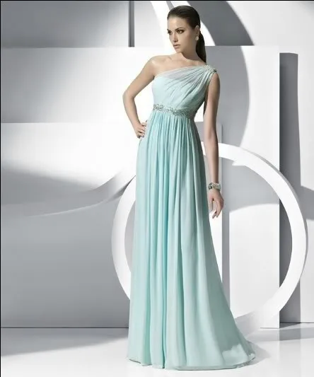 원피스 crystal waistband New Elegant Green chiffon One-shoulder long Bridal Gown Prom Graduation Bespoke Occasion Dresses